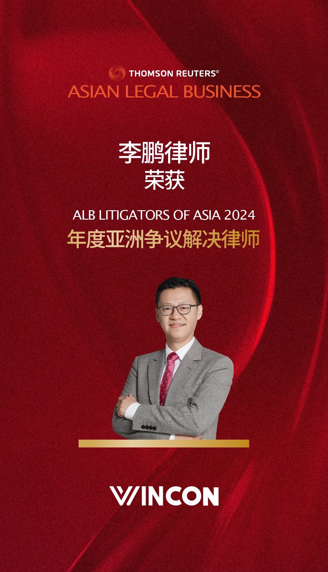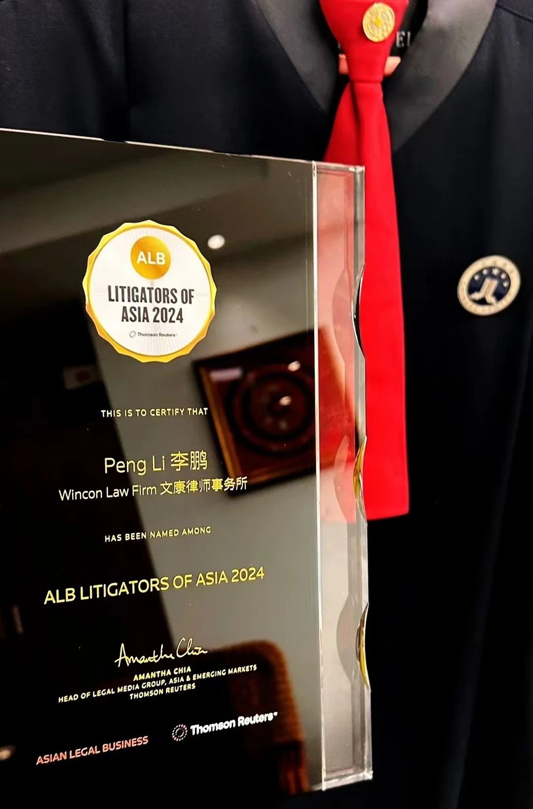 2024年12月20日,权威法律媒体《亚洲法律杂志》(ALB)公布2024 ALB年度亚洲争议解决律师榜单(ALB LITIGATORS OF ASIA 2024),文康律师事务所高级合伙人李鹏律师荣登榜单。